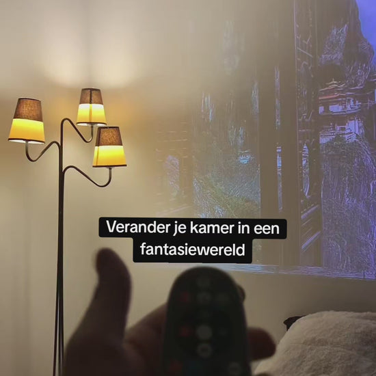Ik vind de Lugofflix projector echt nice. Je kan de projector alle kanten op draaien van muren naar plafond. -